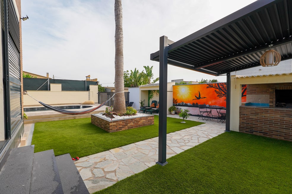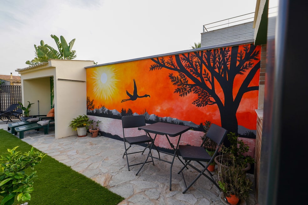 Nuestra villa, situada en el centro de Deltebre, combina la tranquilidad del entorno natural con la comodidad de tenerlo todo cerca: supermercados, bares locales, restaurantes con cocina típica y rutas de senderismo junto al río Ebro.